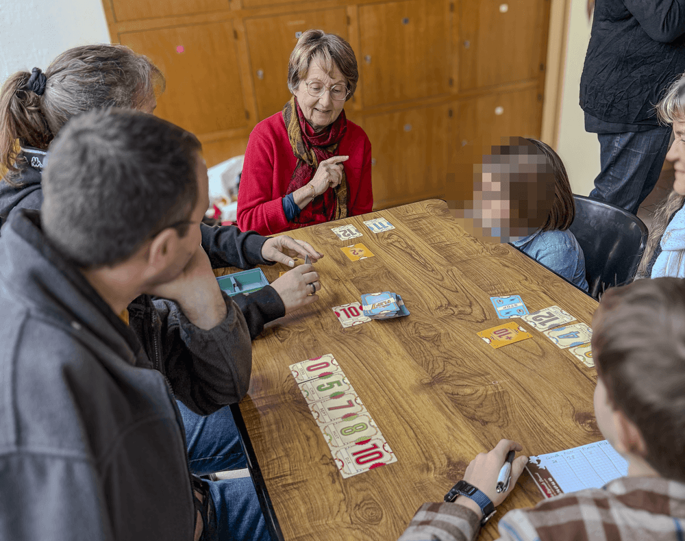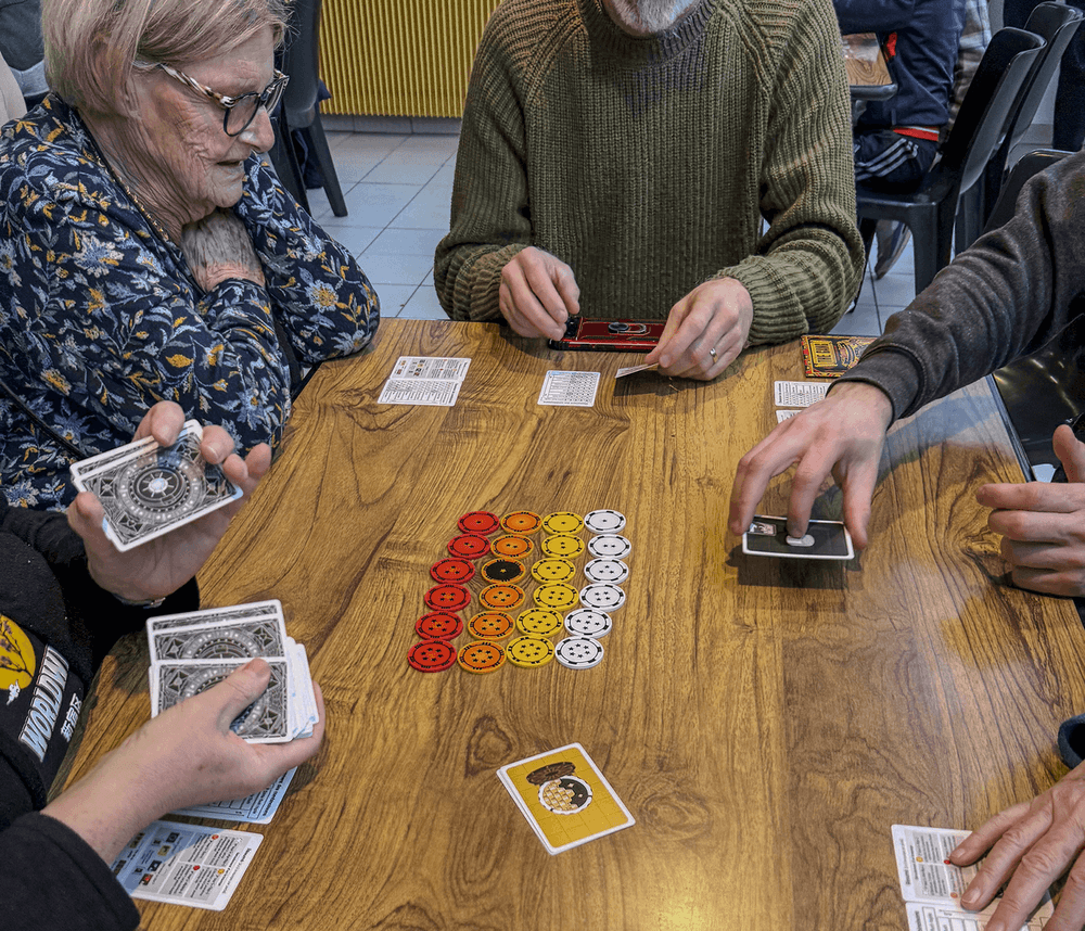 À 92 ans, on a de l’expérience, on sait tricher avec élégance ! Julia cherchait son jeu, la doyenne cherchait ses lunettes, mais c’est la bonne humeur qui a gagné.