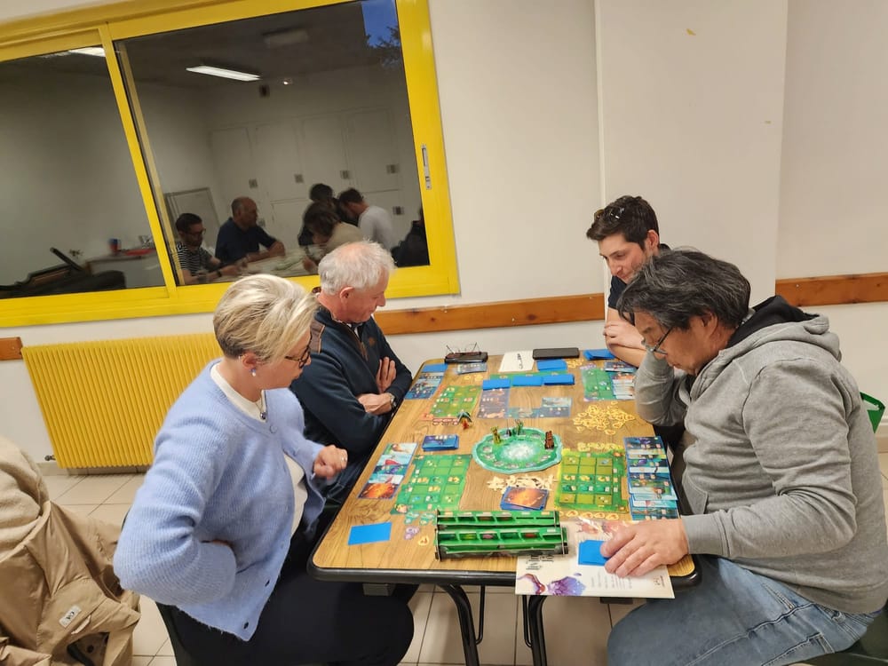 Côté jeux, la sélection était plus pointue qu'une épine de cactus dans un pied nu. À la table de Sylvain, on a frôlé la surchauffe cérébrale avec Bioviva, où l'on a appris que la crevette change de sexe 🦐 plus souvent qu'un politicien de veste. Les jetons colorés s'accumulaient pendant que les neurones fumaient en silence.